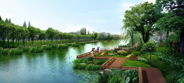 ● 以自然式手法打造景觀岸線,結(jié)合親水平臺、木質(zhì)廊道等營造生態(tài)和諧的濱水景觀。