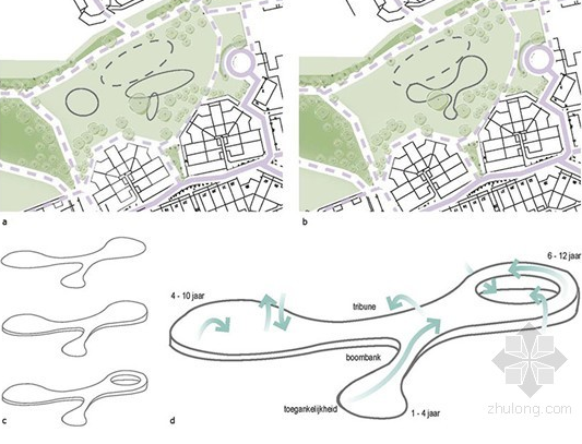 這是由Carve設(shè)計的海牙市Billie Holiday(比利假日)游樂場。位于海牙安靜的郊區(qū)Loosduinen。這座公園在翻新之前,幾乎被人遺忘。然而,隨著修復(fù)之后,這里變成了一個極具吸引力的公園。在翻新伊始,社區(qū)委員會舉辦了公眾參與的活動,充分了解了當?shù)鼐用竦囊庠浮R虼耍伦闱驁龊妥孕熊嚶窂绞桩斊錄_。通過重新安置新設(shè)備,而達到周圍空間重組的目的。
