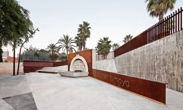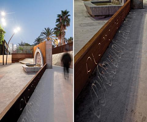 廣場邊有一個斜坡,縱長的臺階緩慢傾斜,漸漸地都與斜坡融為一體。舞者Carmen Amaya的名字被篆刻在一塊克爾頓鋼板上,被擺放在最顯眼的位置。